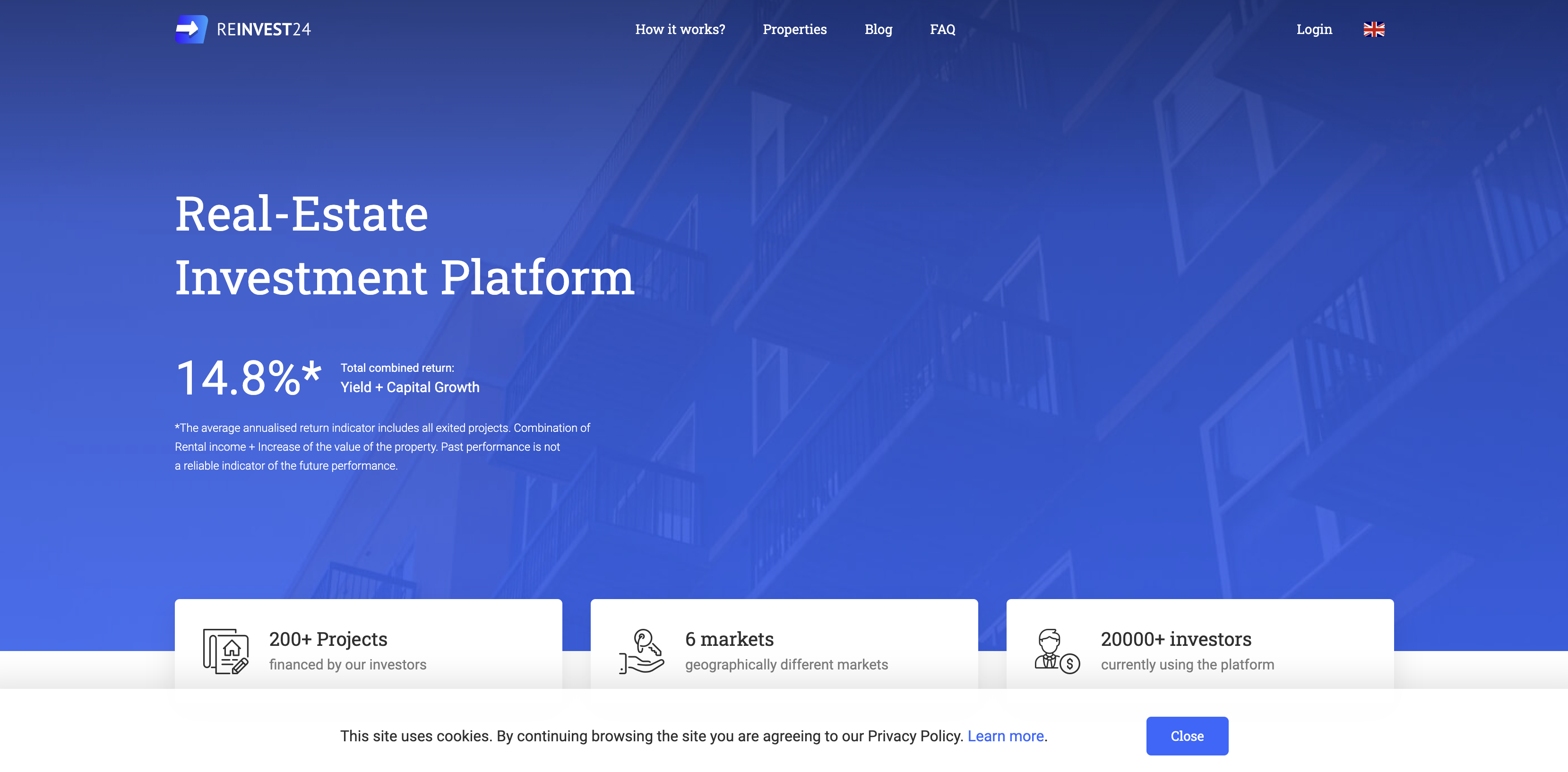 The platform handles the full cycle: deal sourcing, due diligence, legal structuring, and investor payouts. You browse available properties, review financials and risk metrics, and invest starting from relatively modest ticket sizes. Reinvest24 takes a management fee but keeps skin in the game by co-investing on most deals.